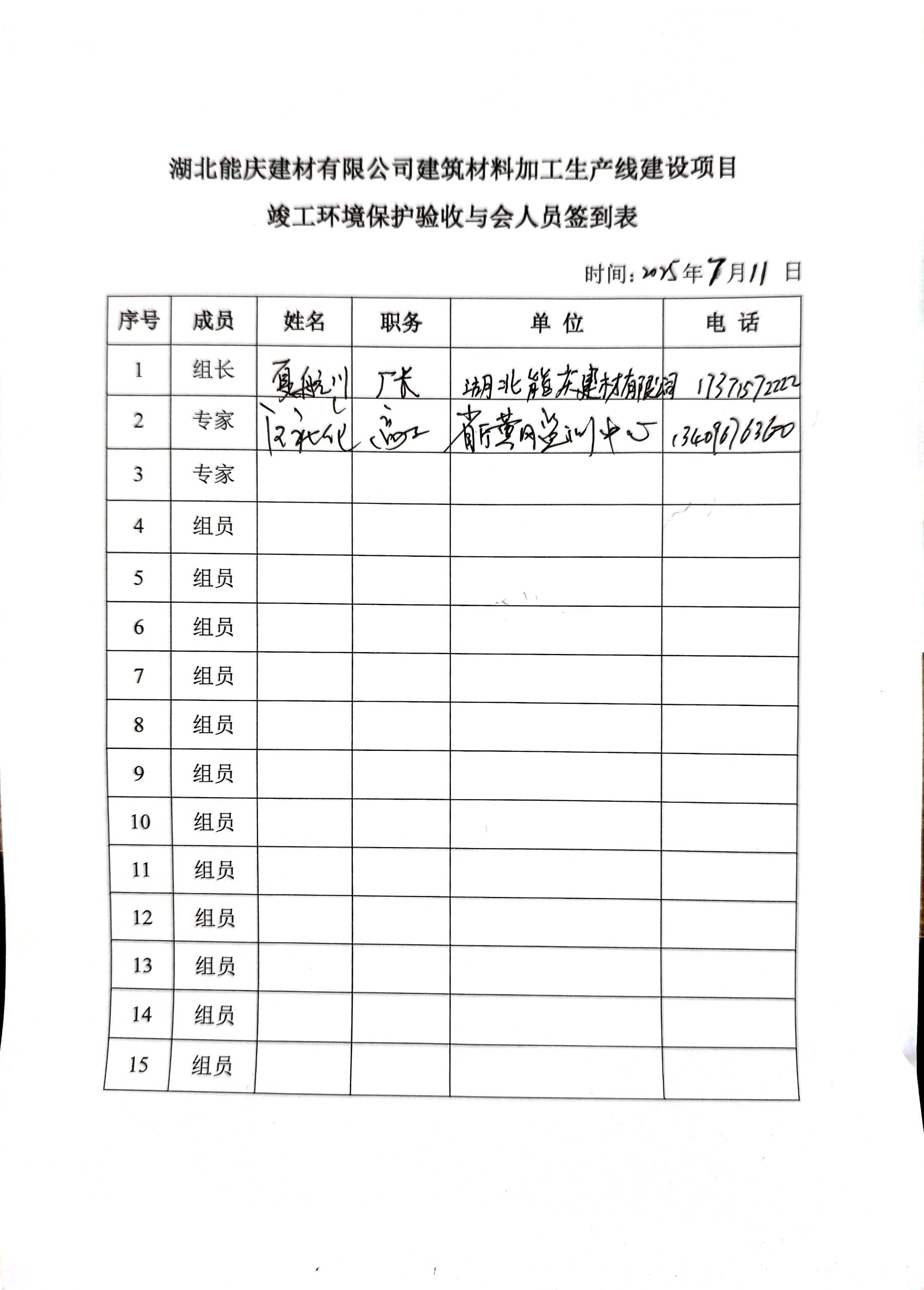 2025年7月11日,湖北能慶建材有限公司在黃岡市黃州區(qū)主持召開了《湖北能慶建材有限公司建筑材料加工生產(chǎn)線建設(shè)項(xiàng)目竣工環(huán)境保護(hù)驗(yàn)收監(jiān)測報(bào)告表》技術(shù)評估會。